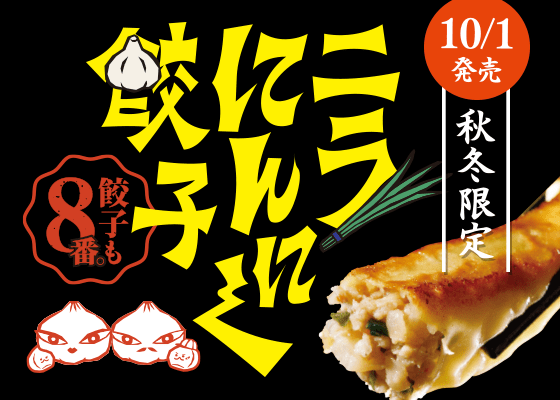 旨みが、じわ〜っ ふわっと、ニラとにんにくの香りがたまらない! 秋冬限定のニラにんにく餃子。